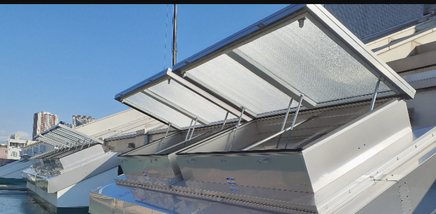 特に多くの人が利用する特殊建築物等においては設置が義務付けられており、煙の浮力を利用した「自然排煙」を行うための重要なシステムです。
